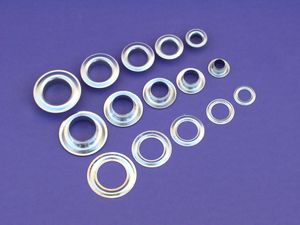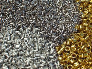 Ojalillos metálicos en hierro, bronce y aluminio. Variedad en acabados superficiales. La más amplia variedad de medidas. Arandelas opcionales.