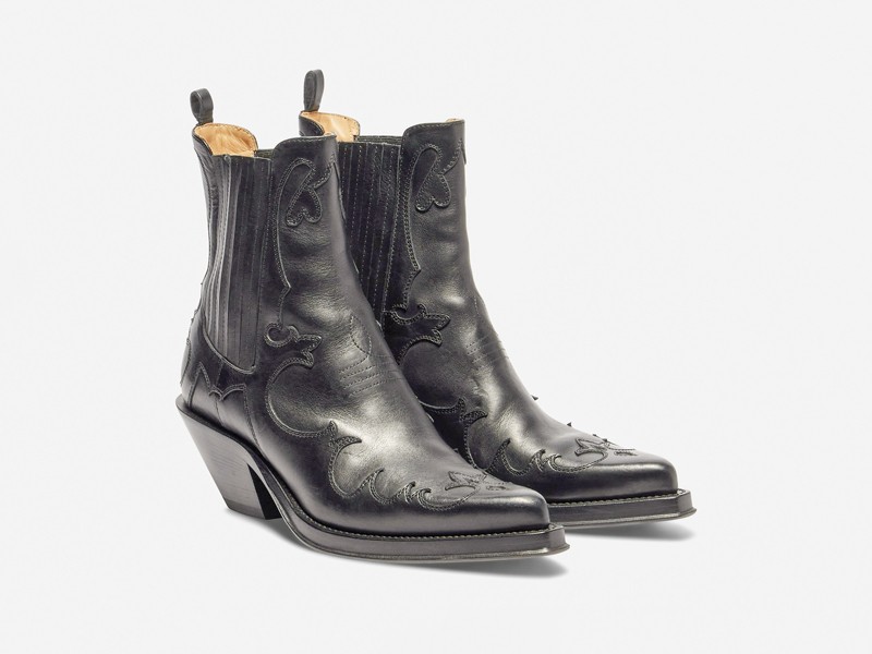 En materialidad predominan cuero, gamuza, con terminaciones que van de lo mate a lo aterciopelado. Entre los recursos visibles aparecen bordados western, arnés, grabados, y soluciones de calce como calce slip-on, pensadas para ritmo urbano y uso extendido.