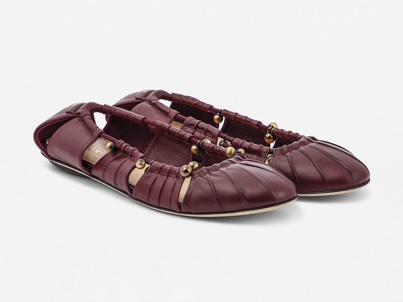 Merlot se posiciona como tono de base para líneas de calzado, con aplicaciones en cueros lisos y gamuzas, y con una lectura que privilegia profundidad cromática y continuidad de colección. En la página, el color se articula en modelos planos y en propuestas con más presencia de suela, mostrando cómo un mismo tono puede adaptarse a perfiles urbanos diversos.