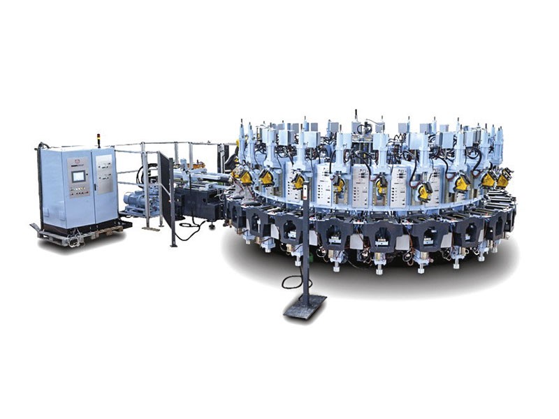 Máquina rotativa automática para inyección directa de suelas de caucho monodensidad y bidensidad sobre el corte.